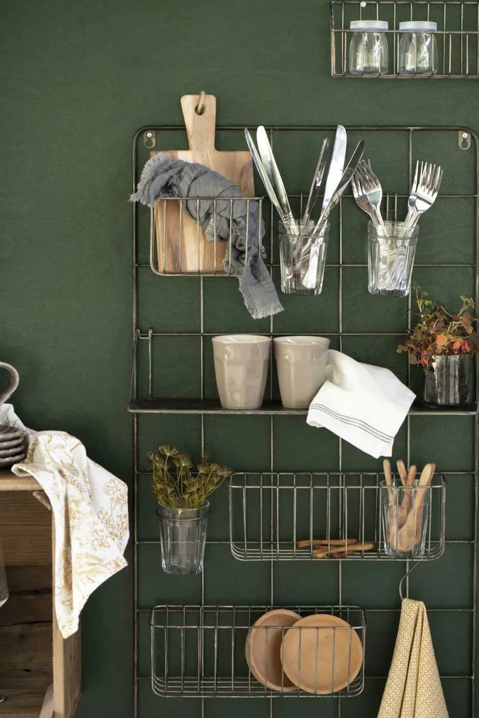 Wie dieses Regal, das mit seinen schwungvoll gestalteten Körben ein kleines Schmuckstück ist, das sich gleichzeitig aber auch nützlich macht.