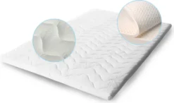 Latex Topper – Matratzenauflage Die Latex Matratzenauflage ist für jede Person, die Schlafprobleme wegen der unbequemen Matratze hat. Der Topper erhöht den Komfort Ihrer alten Matratze, indem es Ihnen die bestmögliche Unterstützung zur Verfügung stellt. Die hohe Latexelastizität bietet Unterstützung für die unzähligen Berührungspunkte, entspannt die Muskeln und verbessert den Schlaf, indem es die Erstarrung der Extremitäten verhindert. Ihre ergonomischen Charakteristiken erlauben es, die Körperformen zu folgen, was einen ungewöhnlichen Komfort Ihrem Körper gibt Der Topper ist eine komfortable Lösung für feste und unbequeme Matratzen. Latex ist punktelastisch, passt sich optimal dem Körper an und eignet sich für alle Schlaftypen. Der Matratzentopper unterstürzt bei Seitenschläfern und Rückenschläfern wunderbar die Wirbelsäule und gibt ein entspanntes Gefühl. Er hat einen ganzen durchgehenden Kern und ist wendbar. Der Doppeltuch Bezug aus Polyester und Viscose lässt sich leicht durch die vier Eckgummis befestigen. Geeignet für Boxspringbetten Die Primo Line TOP-Matratze ist zum Einsatz auf jeglichen Matratzen geeignet. Damit hat man eine komfortable Lösung für Couchs, ausziehbare Sofas und Betten. Einfach transportabel beim Urlaub in Villa, Hotel, Camping. Die Latex Matraratzenauflage wird in den folgenden Größen verkauft: 80 x 190 cm, 80 x 200 cm, 90 x 190 cm, 90 x 200 cm, 90 x 210 cm, 90 x 220 cm, 100 x 200 cm, 105 x 190 cm, 120 x 200 cm, 135 x 190 cm, 140 x 190 cm, 140 x 200 cm, 140 x 210 cm, 140 x 220 cm, 150 x 190 cm, 150 x 200 cm, 150 x 210 cm, 150 x 220 cm, 160 x 190 cm, 160 x 200 cm, 160 x 210 cm, 160 x 220 cm, 180 x 190 cm, 180 x 200 cm, 180 x 210 cm, 180 x 220 cm, 200 x 200 cm, 200 x 210 cm, 200 x 220 cm. Sonderanfertigung nach Kundenwunsch für weitere Größen möglich