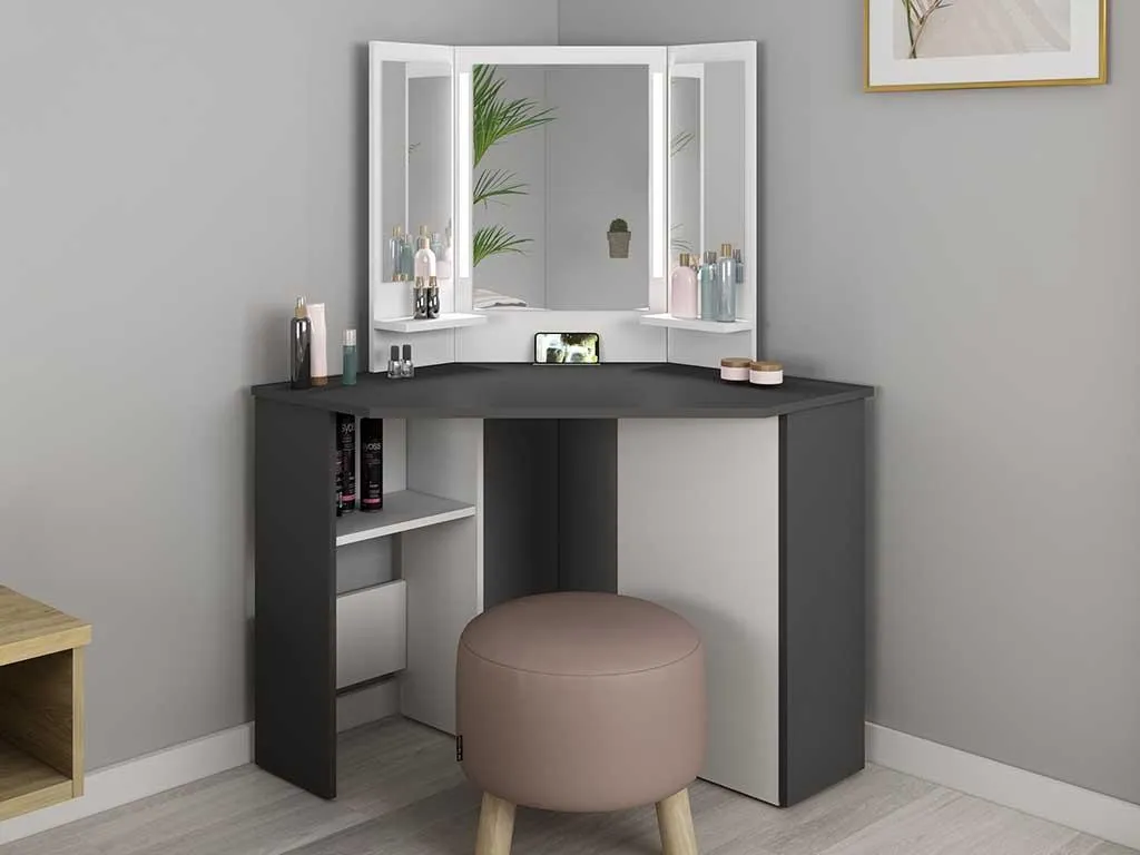 Er verfügt über eine besonders große Schublade, die viel Stauraum für Ihre Schminke und Accessoires bietet.