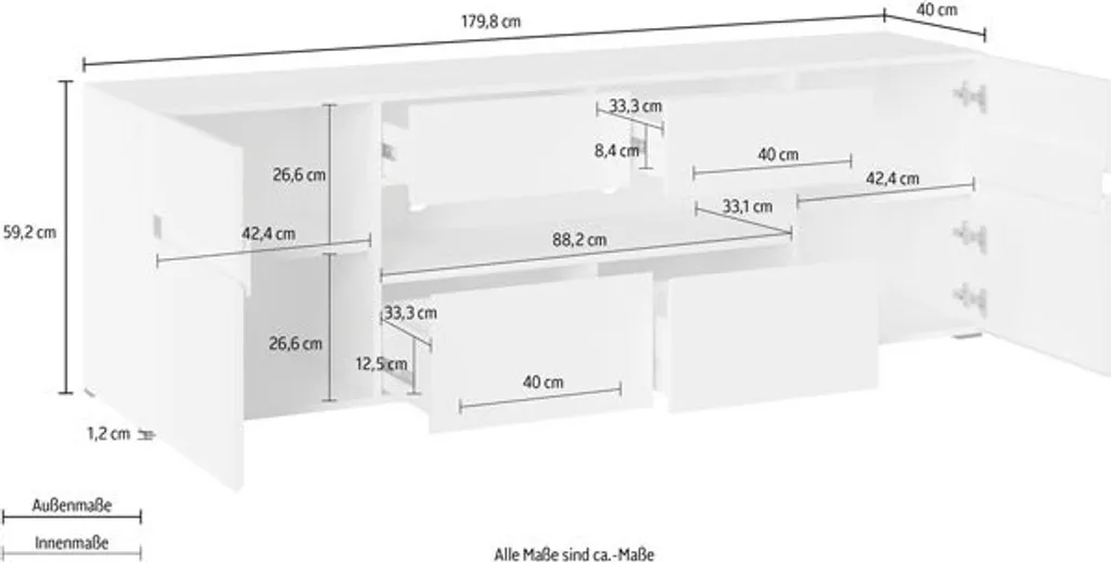 Attraktive Optik und funktionales Design, dieses Lowboard ist ein echtes Raumwunder.