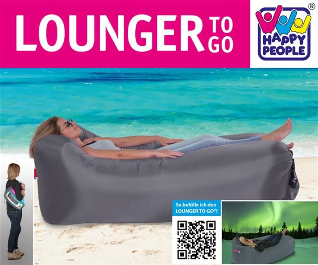 Happy People Luftbett Lounger to go Grau MaĂźe: ca. 230 x 70 cm (ohne Luft). 180 x 75 x 60 cm (mit Luft). Das Luftkissen ist blitzschnell befĂĽllt. Ohne Pumpe