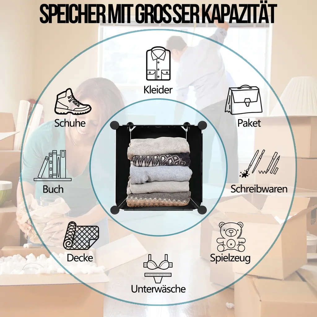 Kreativ Design – Der Kubus können separat verwendet werden oder Sie können für eine größere Speicherkapazität gestapelt und miteinander kombiniert machen; lassen Sie Ihre Fantasie frei und erstellen Sie Ihre einzigartige Schrank.