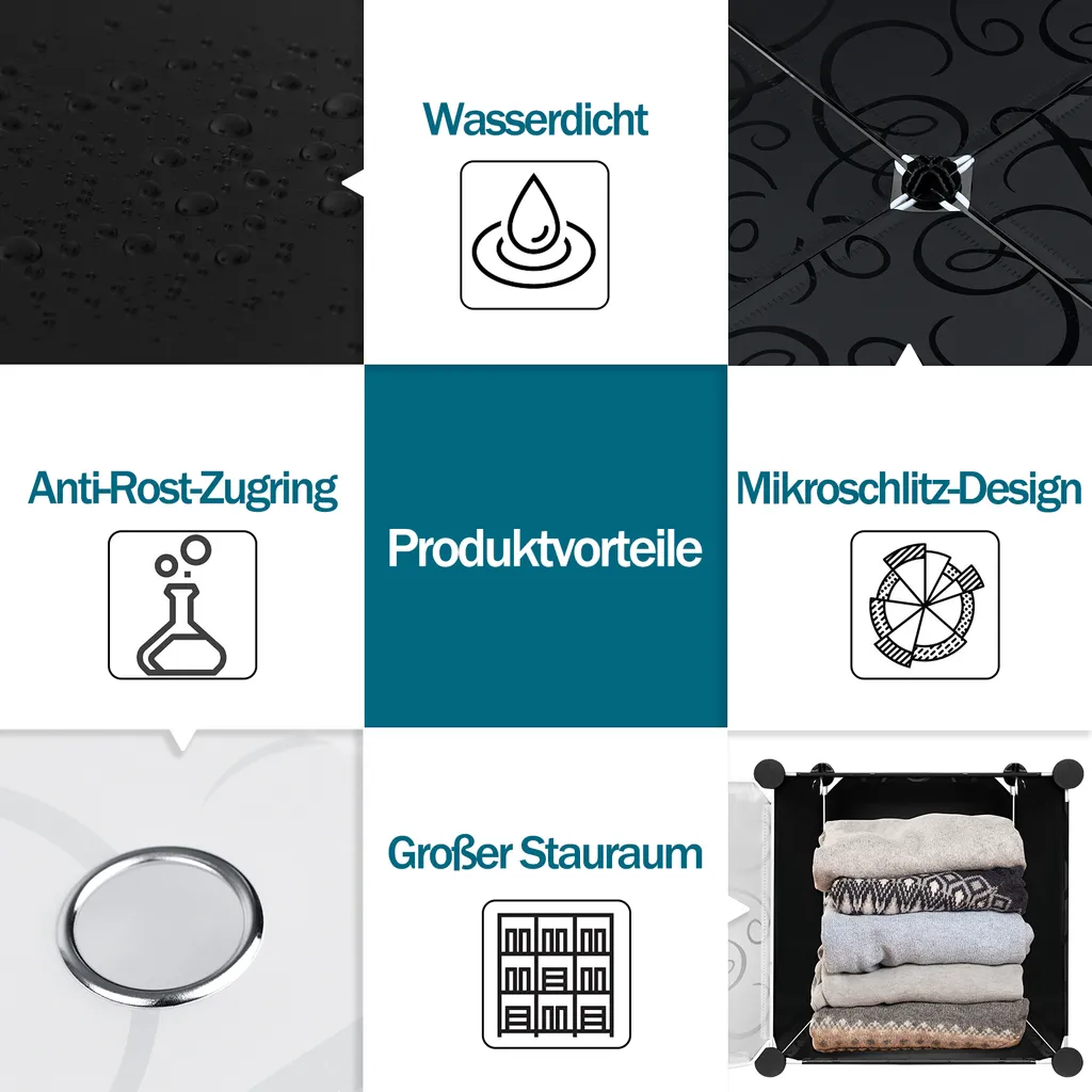 Das Aufbewahrungsregal kann für jeden Wohnbereich eingesetzt werden, z.B. im Flur, Wohnzimmer, sogar auch Büro, ist für die Aufbewahrung/Ordnung von Kleidung, Schuhen, Badeutensilien, Plüschtieren usw. ideal geeignet. Es kann auch als Raumteiler dienen.
