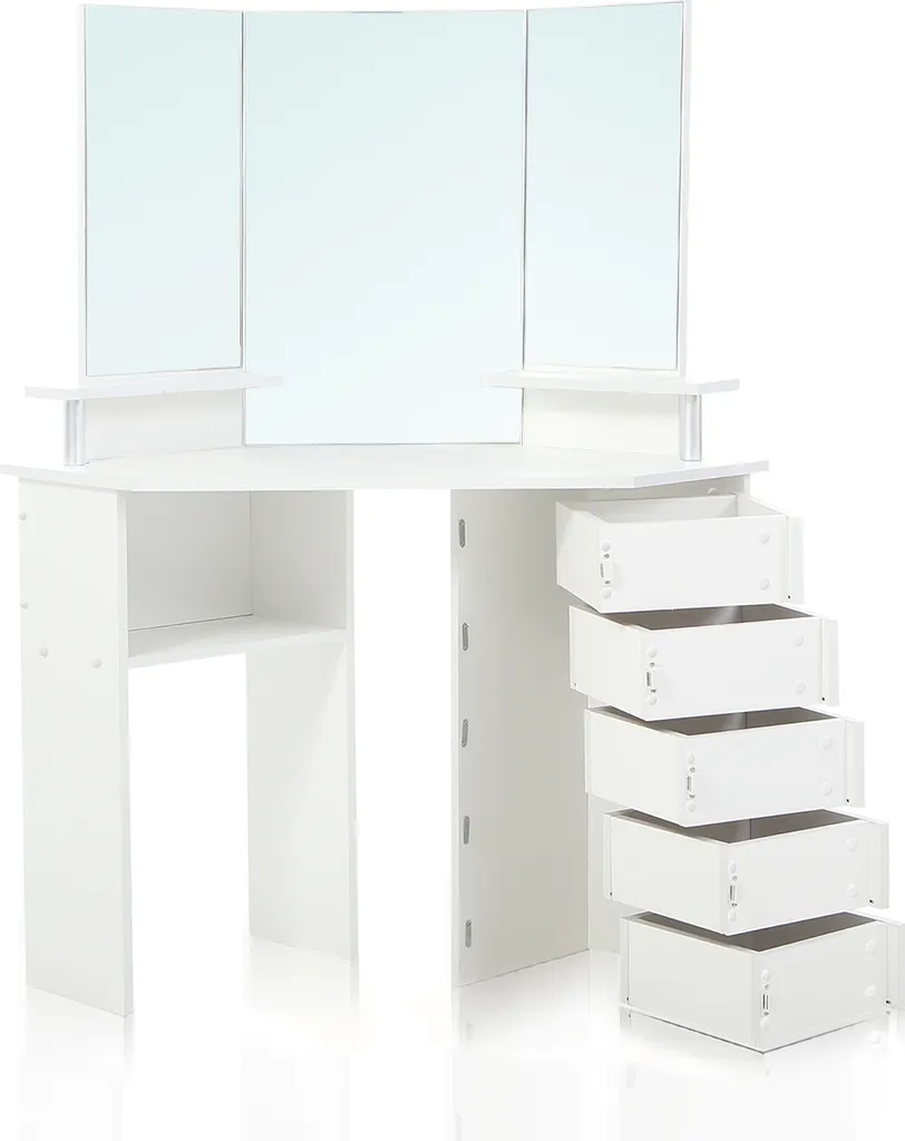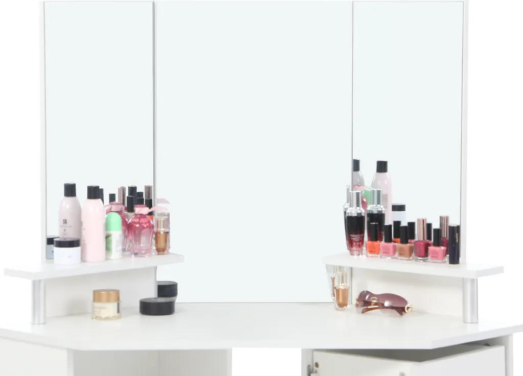 Makika Eckschminktisch / Schminktisch TYRA mit drehbaren Schubladen