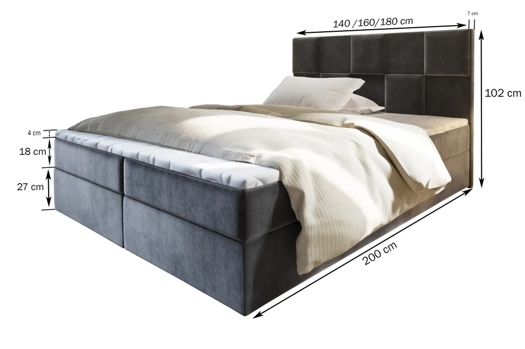 Das elegante Design des kontinentalen Bettes PRAT macht es zur idealen Wahl für Liebhaber reich ausgestatteter Innenräume. Die Ausstattung des Bettes wird durch zwei geräumige Bettzeugkörbe ergänzt. Das gepolsterte Kopfteil ist ein wesentliches und einfaches Element eines jeden Bettes, wenn Sie Ihr Schlafzimmer verschönern wollen. Die Kopfteilpaneele sind so angeordnet, dass ein 3D-Effekt entsteht, der den Betrachter in Erstaunen versetzt. Dank des angenehmen Materials werden viele Aktivitäten vor dem Schlafengehen zu einem Vergnügen. Verfügbar in einer breiten Palette von Farben. Das PRAT 3D-Bett wurde mit großer Sorgfalt bis ins kleinste Detail entwickelt.