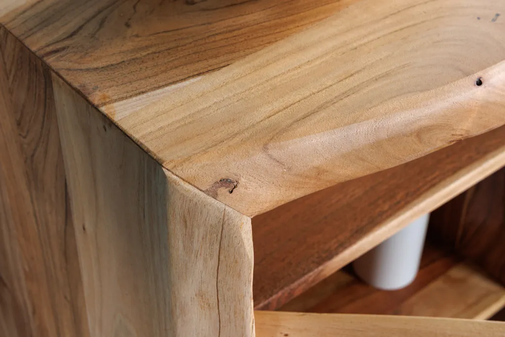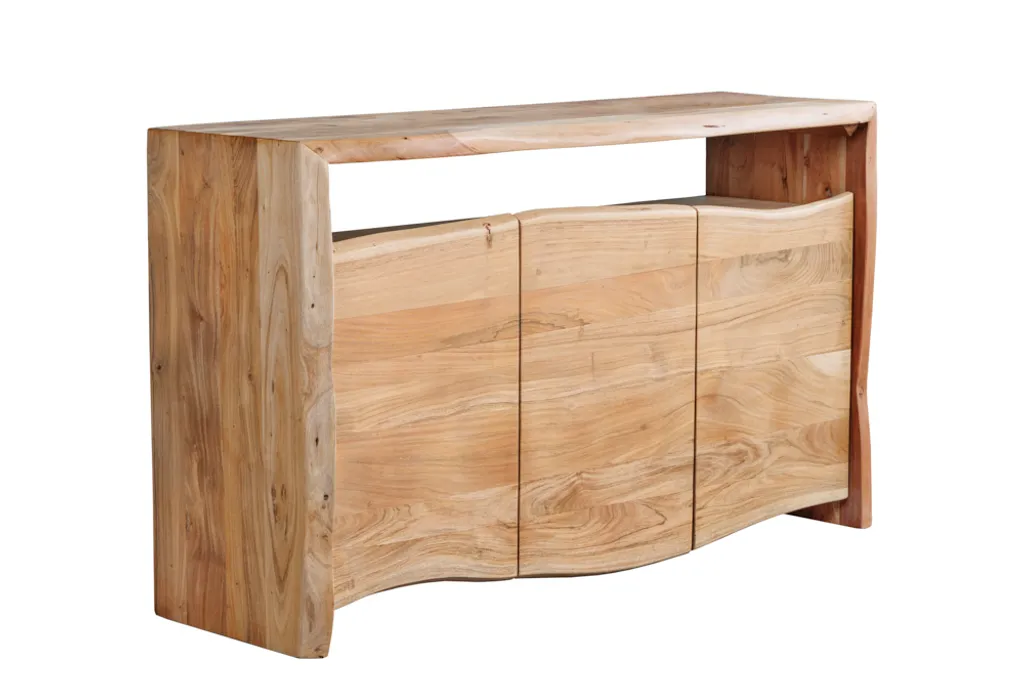 Unser massives Sideboard MAMMUT aus hochwertigem Akazienholz verleiht Deinem Zuhause ein natürliches Flair und bietet gleichzeitig jede Menge Stauraum! Das Sideboard wurde so designt, dass der ursprüngliche Verlauf der Baumkanten perfekt zur Geltung kommt. Mit drei Schrankfächern und einem offenen Fach bietet das Regal auch ausreichend Stauraum.