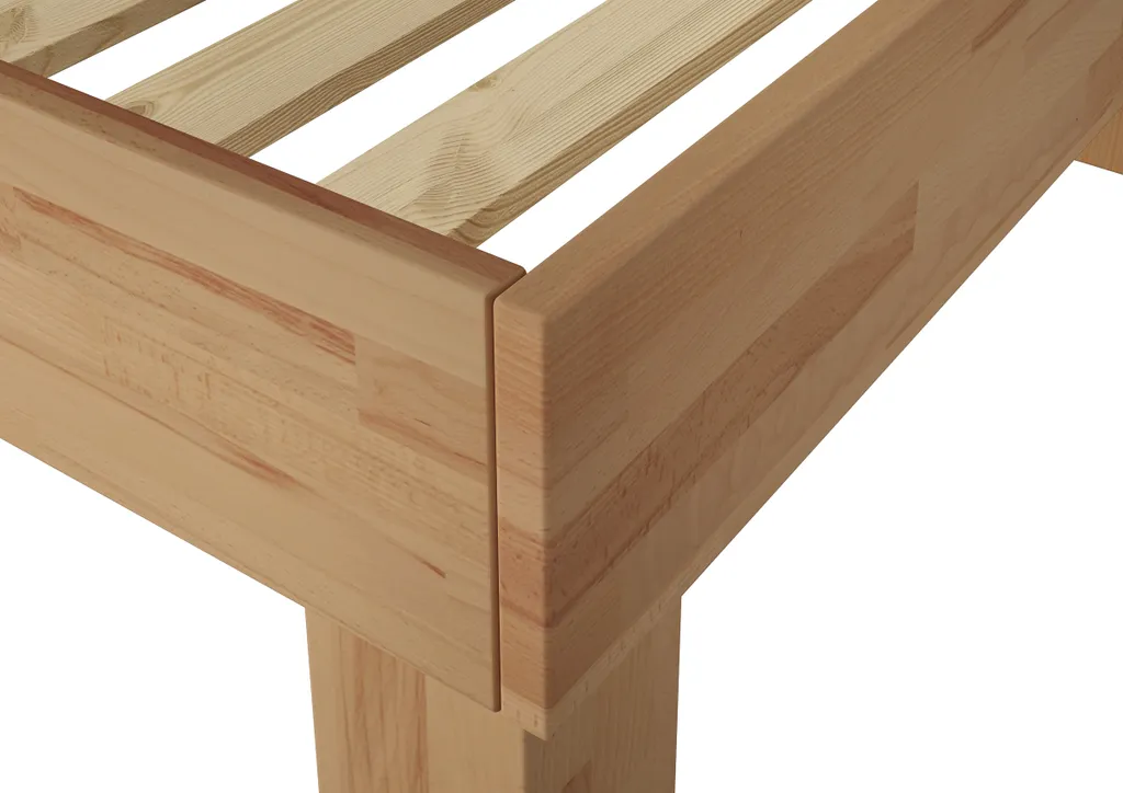 Das Bettgestell ist nur geölt und dadurch sehr naturbelassen.