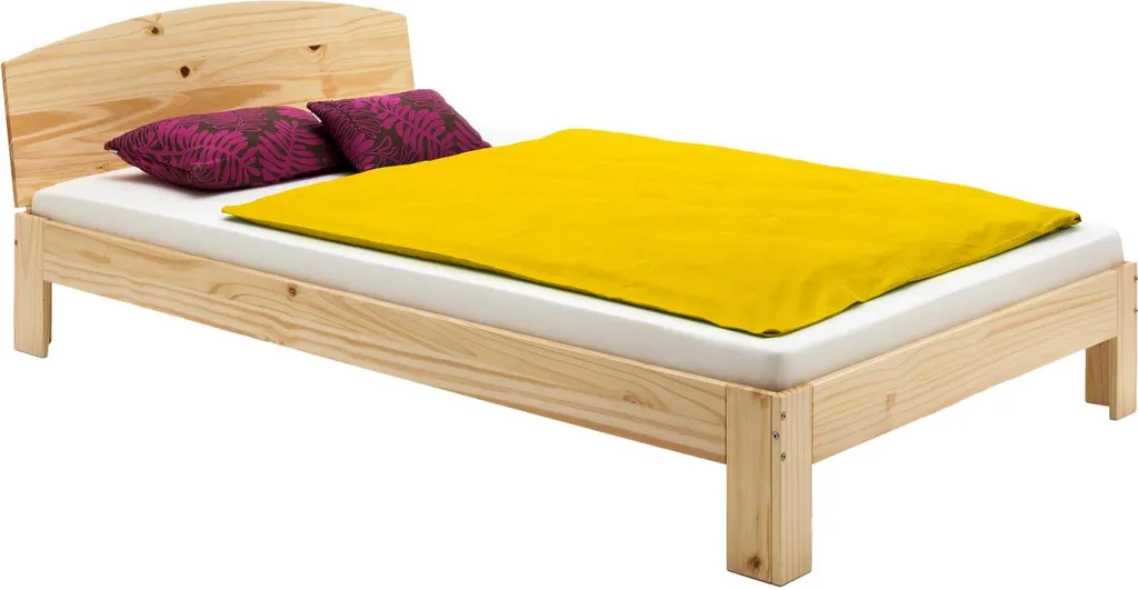 - Das Bettgestell ist aus Kierfernholz gefertigt und natur lackiert, mit einer Liegefläche von 100 x 200 cm erhältlich.