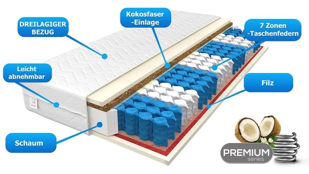 Kokosfasern sind sehr wiederstandsfähig gegen mikrobielle Fäullnisprozesse und gegen Feuchtigkeit, bieten keinen Nährboden für mikroorganismen, wirkt wärmeisolierend und schalldämpfend, sehr strapazierbar, wirkt feuchteregulierend, erhöht Härtegrad der Matratze. Besonders empfehlenswert für Allergieker.