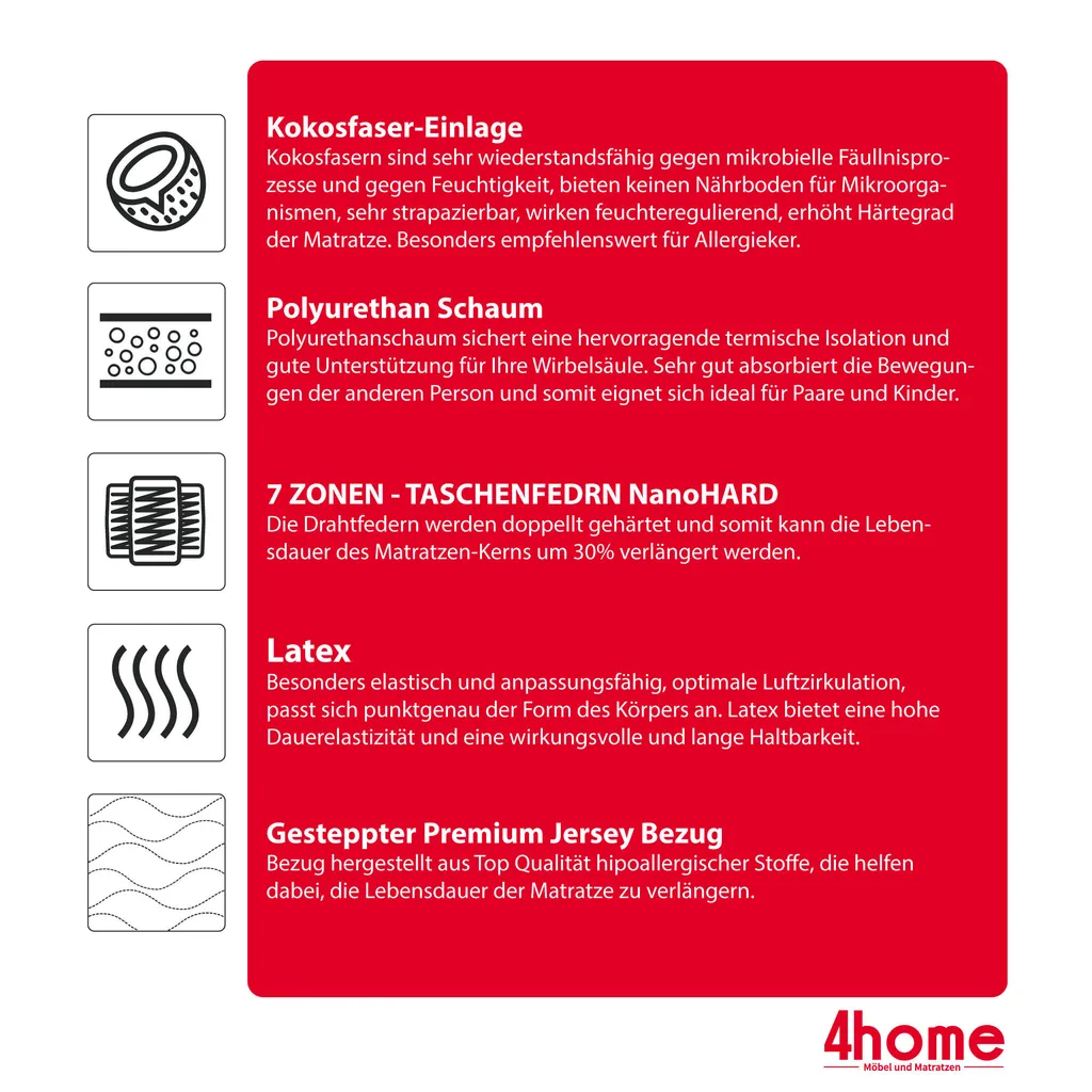 - HÄRTEGRAD H4 FEST – eine harte Matratze ist für Personen geeignet, die 90-120 kg wiegen und für Personen, die es bevorzugen auf spürbar harter Oberfläche zu schlafen. Sorgt für die korrekte Ausrichtung des Körpers während des Schlafes und komfortable Erholung.