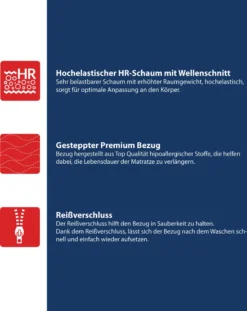 Die Farben der Matratzenkerne können von der Produkteabbildung abweichen, weil diese in unterschiedlichen Farben produziert werden können.