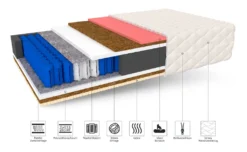 - 7 ZONEN – ideale Lösung für alle, die Wert auf Komfort legen. Die Liegefläche ist hier in 7 verschiedene Bereiche unterteilt, die sich in ihrem Härtegrad unterscheiden. Auf diese Weise wird der Körper von Kopf bis Fuß entsprechend seinem Gewicht angemessen gestützt. Wenn ein solches Modell von Paaren verwendet wird, verschwindet außerdem der Nebeneffekt, dass der Nachbar im Schlaf herumzappelt. Eine 7-Zonen-Matratze eignet sich auch gut für Paare mit einem großen Gewichtsunterschied.