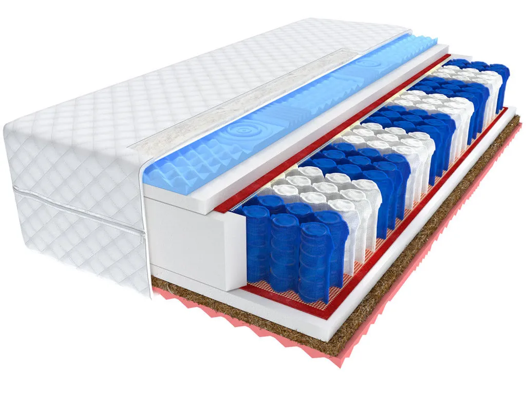 Jede Feder ist separat in einer Stofftasche eingenäht und ist ca. 30% gedehnt, so wird das Risiko des Zusammenbruchs vermieden. Es besteht keine Verbindung zwischen den Federn, der Vorteil ist, dass jede von ihnen unabhängig von der anderen arbeiten kann. Im Vergleich zu konventionellen Matratzen mit Federkern sind die Matratzen mit Taschenfederkern für zwei Personen bestens geeignet.