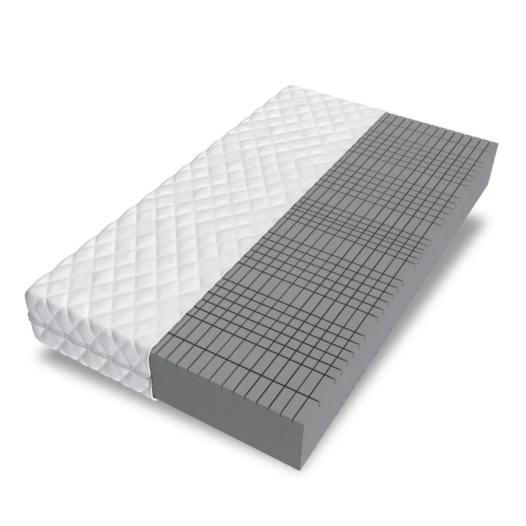 Der Schaum besitzt eine nicht einheitliche Zellstruktur, die für Körperstütze, Komfort und Elastizität sorgt. Die Matratze passt sich ideal dem Nutzer an und bleibt dabei extrem leicht. Sie ist gegen Verformungen widerstandsfähig. Die poröse Struktur bietet ausgezeichnete Luftzirkulation und verhindert die Entwicklung von Pilzen und Schimmeln. Sie ist für Allergiker geeignet.