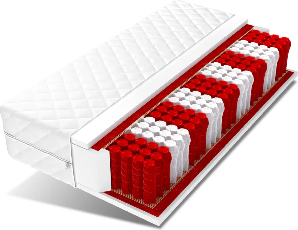 - 7 ZONEN – ideale Lösung für alle, die Wert auf Komfort legen. Die Liegefläche ist hier in 7 verschiedene Bereiche unterteilt, die sich in ihrem Härtegrad unterscheiden. Auf diese Weise wird der Körper von Kopf bis Fuß entsprechend seinem Gewicht angemessen gestützt. Wenn ein solches Modell von Paaren verwendet wird, verschwindet außerdem der Nebeneffekt, dass der Nachbar im Schlaf herumzappelt. Eine 7-Zonen-Matratze eignet sich auch gut für Paare mit einem großen Gewichtsunterschied.