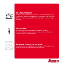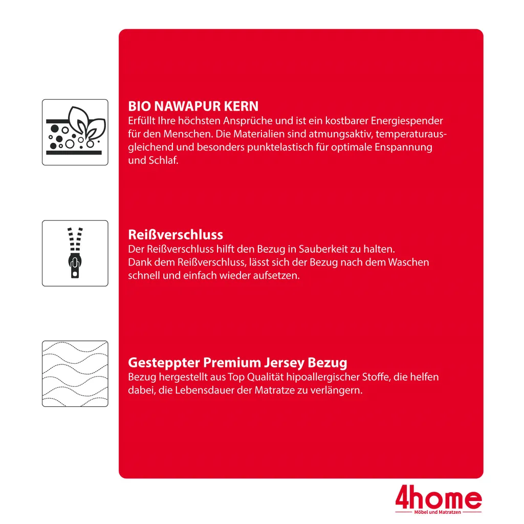 und die glatte, zarte Struktur machen den Stoff weich. Die Matratze hat eine profilierte Oberfläche, die für die Körperanpassung zuständig ist. Die speziellen Luftkanäle leiten überschüssige Wärme im Schlaf perfekt ab. Im Schaum befindet sich mindestens 22% Öl aus Rizinussamen. Seine Heileigenschaften sind seit Jahrhunderten bekannt. Die Pflanze ist sowohl in Indien als auch in Ägypten als Heilmittel verwendet worden. Das wertvolle Öl ist eine Kraftquelle für die Seele sowie für den Körper und bietet einen gesunden Schlaf.