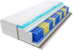 – spielen eine groĂźe Rolle bei der Konstruktion der Matratze. Jede Feder befindet sich in einer separaten Materialtasche und ist nicht mit einer anderen Feder verbunden, funktioniert separat, arbeitet leise! Dank dieser Konstruktion, Wenden und Drehen oder der Gewichtsunterschied der anderen Person ist völlig unmerklich. Durch den Einsatz unterschiedlicher Federhärten je nach unterstĂĽtztem Körperelement passt sich die Matratze perfekt dem Körper an. Die Matratze ist in 9 Härtezonen unterteilt. An der Stelle mit der größten UnterstĂĽtzung, d.h. um die HĂĽfte, werden weichere Federn verwendet. Im Lendenbereich und an Stellen, an denen der Druck des Körpers auf die Matratze geringer ist, werden härtere Federn eingebaut. Der Taschenfederkern ist sehr leise. Hier gibt es keinen Welleneffekt, wie bei Bonellfedernkernmatratzen, das eine leichtere Person auf eine andere rutscht.