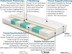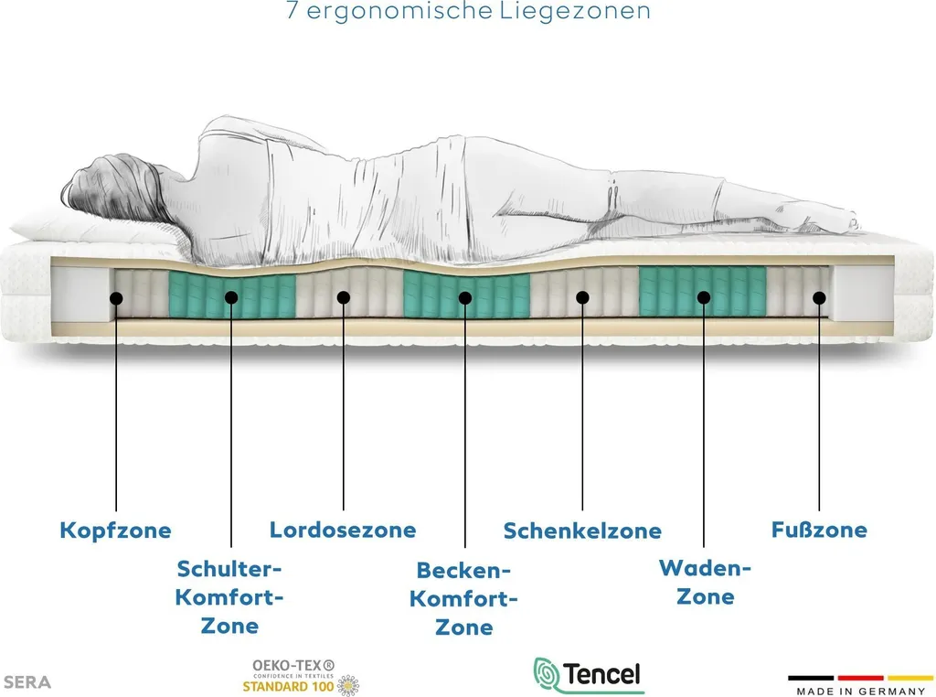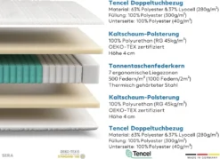 SERA Matratze sollte für den besten Liegekomfort mit einem 30/44-Leisten-Lattenrost (z.B. Lattenrost Cumulo / Lattenrost Nimbo) oder einem Boxspringbettsystem verwendet werden. Die Matratze ist für elektrische Verstellung geeignet!