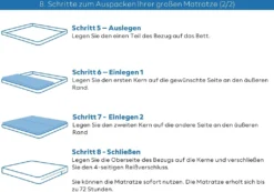 Unser Bezug kann bis zu 60 Grad Celsius gewaschen werden, sodass sich die Anzahl Keime und Bakterien reduzieren. Durch den praktischen 4-seitigen Reißverschluss (teilbar) ist das Beziehen der Matratze auch sehr einfach und praktisch.