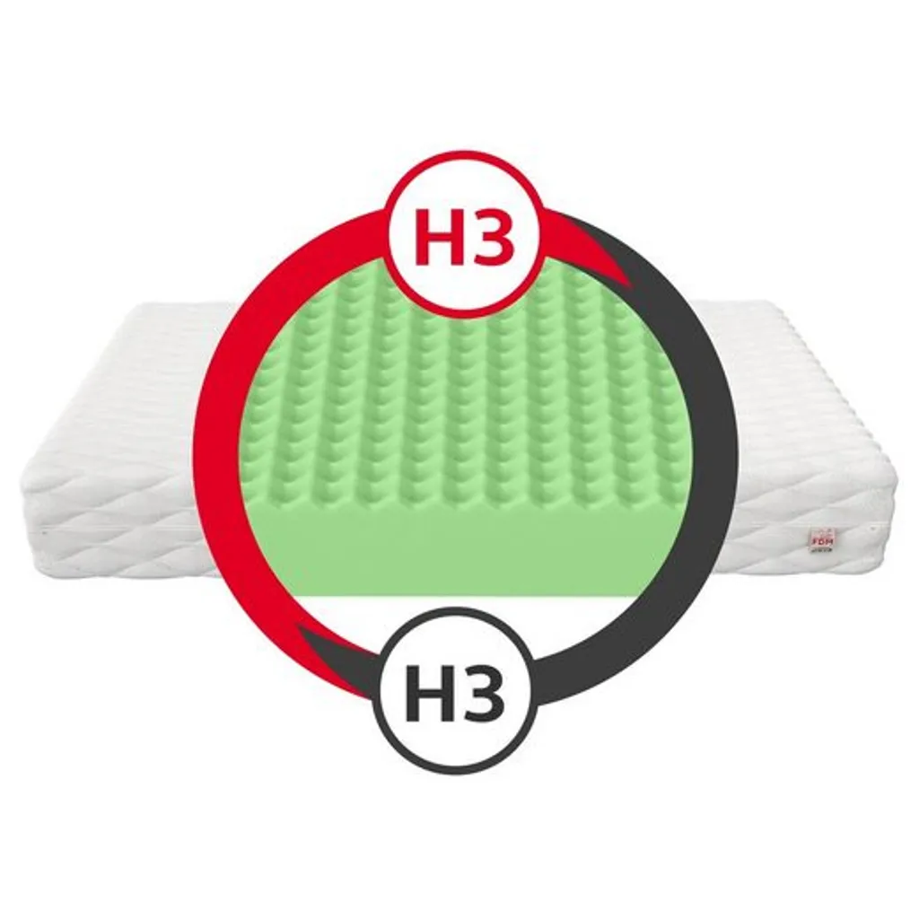 - HÄRTEGRAD H3 MITTELFEST – eine mittelharte Matratze ist für Personen geeignet, die 60-90 kg wiegen und für Personen, die es bevorzugen auf einer mittelharten Oberfläche zu schlafen. Sorgt für die korrekte Ausrichtung des Körpers während des Schlafes und komfortable Erholung.