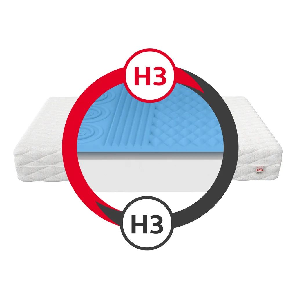 - HÄRTEGRAD H3 MITTELFEST – eine mittelharte Matratze ist für Personen geeignet, die 60-90 kg wiegen und für Personen, die es bevorzugen auf einer mittelharten Oberfläche zu schlafen. Sorgt für die korrekte Ausrichtung des Körpers während des Schlafes und komfortable Erholung.