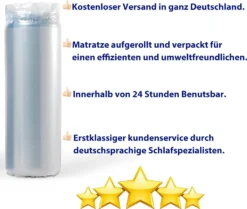 - Die matratze wird aufgerollt und vakummsverpackt geliefert. aufgrund unseres qualitätsstandart leiden die produkte die im keiner weise unter der verpackunsmetode.