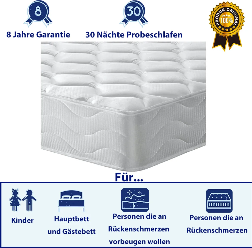 diese matratze ist in verschiedenen größen erhältlich: - 80x200cm, 90x200cm, 100x200cm, 120x200cm, 140x200cm, 150x200cm, 160x200cm, 180x200cm.