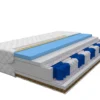 – spielen eine groĂźe Rolle bei der Konstruktion der Matratze. Noch besserer Schlafkomfort im Vergleich zum Taschenfederkern – doppelt so viele StĂĽtzpunkte. Die doppelte Anzahl der Federn im Vergleich zu einer normalen Taschenfederung erhöht auch die Lebensdauer der Matratze. Jede Feder befindet sich in einer separaten Materialtasche, ist nicht mit einer anderen Feder verbunden, funktioniert separat, arbeitet leise! Dank dieser Konstruktion, Wenden und Drehen oder der Gewichtsunterschied der anderen Person ist völlig unmerklich. Durch den Einsatz unterschiedlicher Federhärten je nach unterstĂĽtztem Körperelement passt sich die Matratze perfekt dem Körper an. Die Matratze ist in 9 Härtezonen unterteilt. An der Stelle mit der größten UnterstĂĽtzung, d.h. um die HĂĽfte, werden weichere Federn verwendet. Im Lendenbereich und an Stellen, an denen der Druck des Körpers auf die Matratze geringer ist, werden härtere Federn eingebaut. Der Taschenfederkern ist sehr leise. Hier gibt es keinen Welleneffekt, wie bei Bonellfedernkernmatratzen, das eine leichtere Person auf eine andere rutscht.
