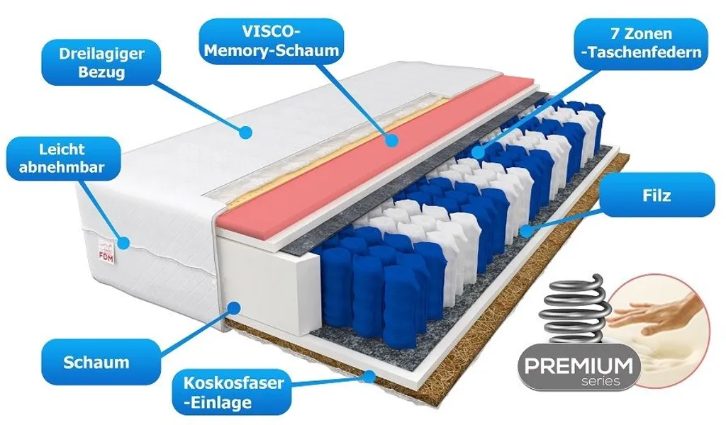 7 ZONEN-TASCHENFEDERN – die jeweils in einer separaten Material-Tasche gepackt sind, insgesamt 289 Taschenfedern pro m2