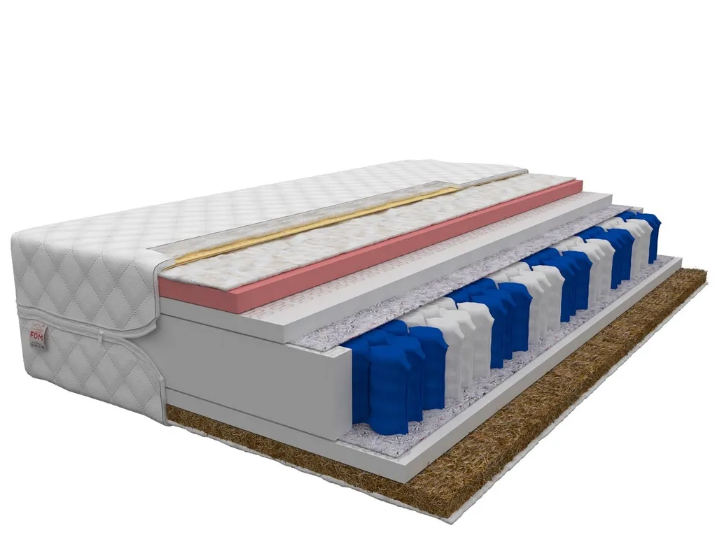Jede Feder ist separat in einer Stofftasche eingenäht und ist ca. 30% gedehnt, so wird das Risiko des Zusammenbruchs vermieden. Es besteht keine Verbindung zwischen den Federn, der Vorteil ist, dass jede von ihnen unabhängig von der anderen arbeiten kann. Im Vergleich zu konventionellen Matratzen mit Federkern sind die Matratzen mit Taschenfederkern für zwei Personen bestens geeignet.