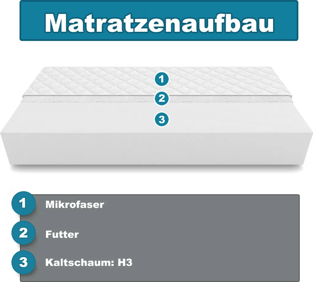 Wir haben unsere Matratzen mit einem bequemen Bezug ausgestattet. Der Bezug hat ein Steppmuster, das ihn elegant aussehen lässt.
