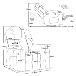 Die Rückenlehne ist bis zu 140° stufenlos elektrisch verstellbar. Der Sessel ist um 240° drehbar. Es ist ideal zum Fernsehen gucken, Lesen, Ruhen oder einfach nur Internet surfen. Die großzügige Sitzfläche, Rückenlehne und beide Armlehnen sind extra breit und dick gepolstert. Die No-Sag-Federung gewährleistet Ihnen jahrelang Bequemlichkeit und Haltbarkeit.