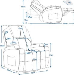 + Multifunktionelle Zubehör: Multifunktionale Getränkehalter in beiden Armlehnen — 4 Seitentaschen-, zwei an jeder Seite. So sind die Fernbedingung, Lesebrille und Smartphone praktisch griffbereit.