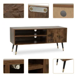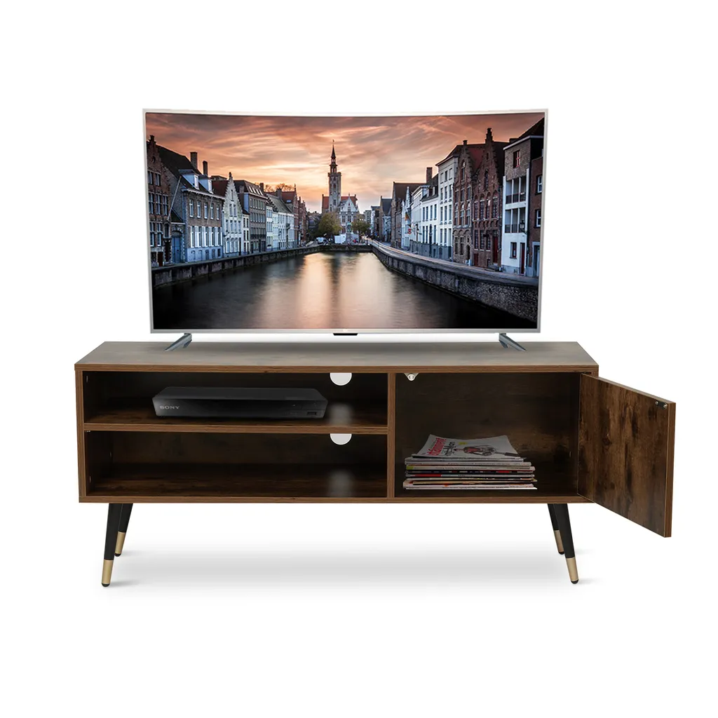 [Mehrere Verwendungsmöglichkeiten]- Dieser TV-Schrank verfügt über 2 offene Regale, die sich sehr gut für DVDs und Spielekonsolen eignen. Der Fernseher kann auf einer breiten Brett aufgestellt werden. In einem Schließfach können kleine Gegenstände aufbewahrt werden, um Ihr Zimmer sauber und ordentlich zu halten.