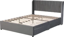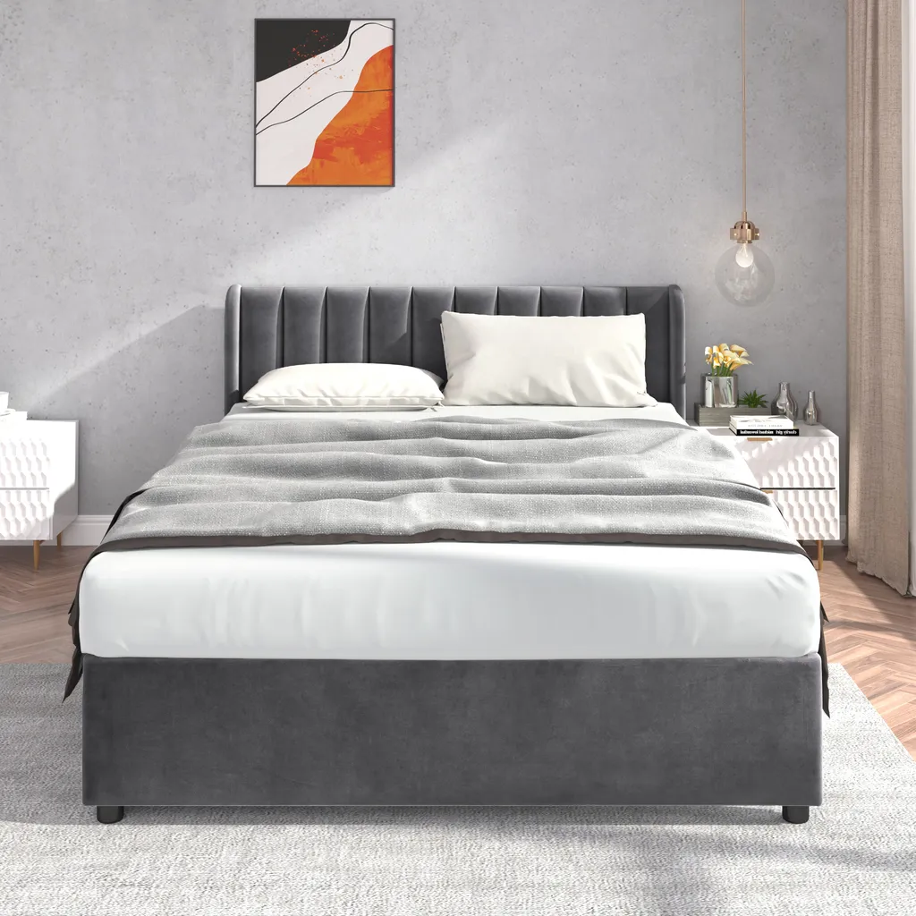 🌱【Mit hohem Kopfteil】Bett in Grau mit hohem Kopfteil zum Anlehnen bietet erholsame Nächte und geruhsamen Schlaf in jedem Schlafzimmer, Gästezimmmer oder Jugendzimmer.