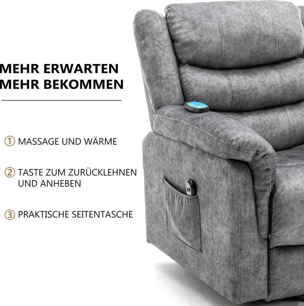 🌱【Überlegenes Material】Der elektrische Hebestuhl ist aus hochwertigem Material gefertigt, er hat dicke Kissen, die mit feuerfesten Schwämmen mit hoher Dichte gepolstert sind, was das Sitzen im Stuhl unterstützt, aber dennoch sehr bequem ist. Weicher Samt mit einem schönen Finish und Nähten, der sehr bequem ist. Der elektrische Liegestuhl ist mit stabilem Holz- und Metallrahmen in langlebiger und sicherer Qualität. Der 25000-fach hochbelastbare, sichere, qualitätsgeprüfte Kraftheber- und Neigungsmotor ist ebenfalls sehr zuverlässig.