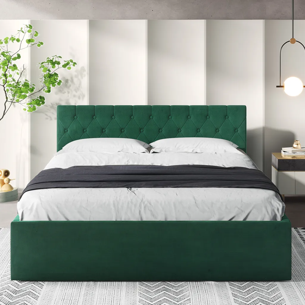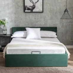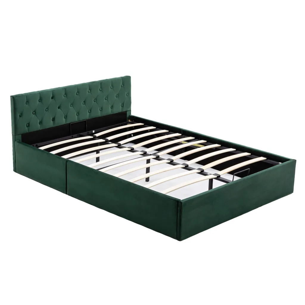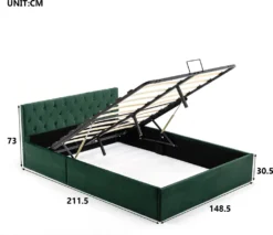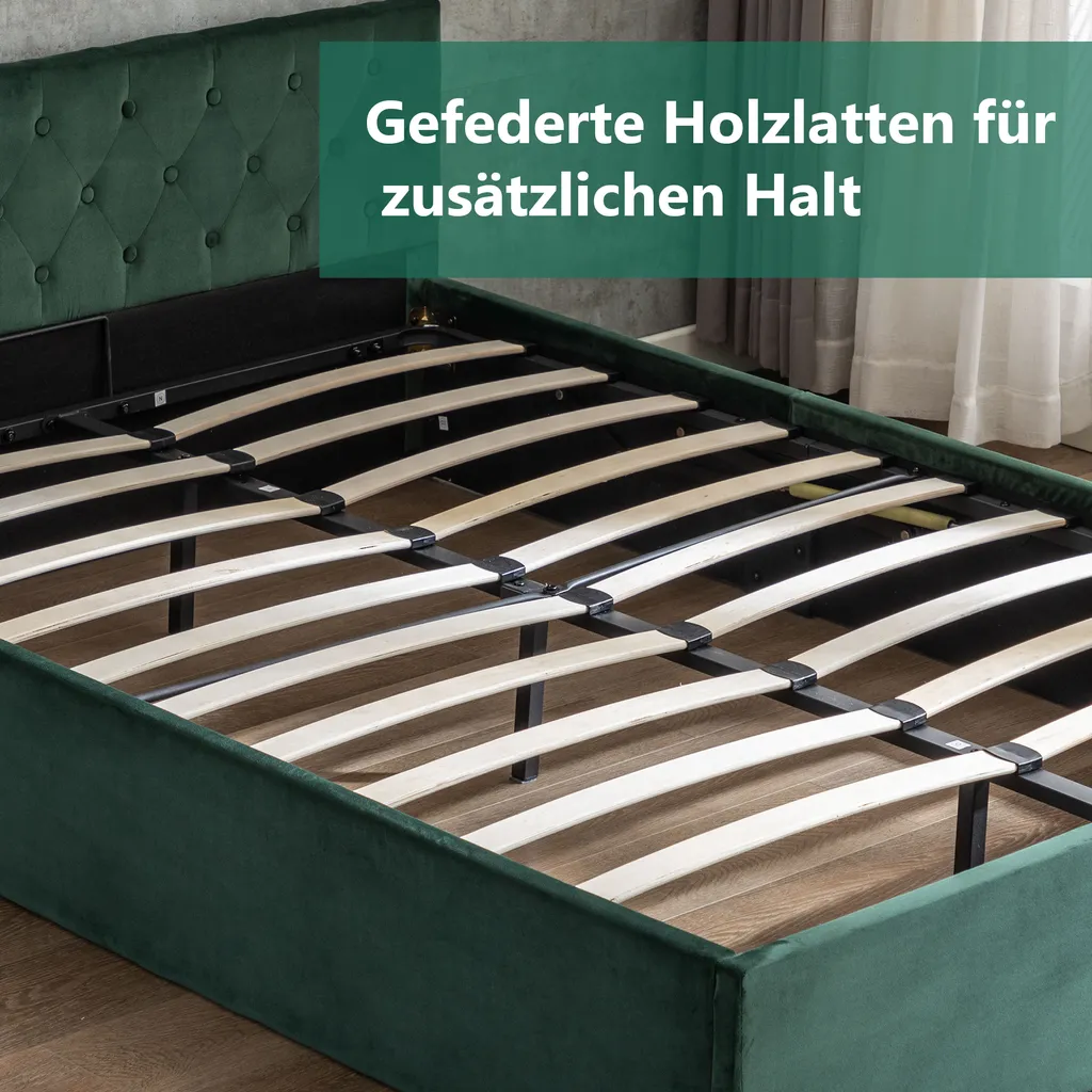 🌱【Stauraum】Großer Bettkasten unterhalb des hochklappbaren Lattenrosts mit viel Stauraum für die Aufbewahrung von Decken, Kissen oder Bettwäsche, Lattenrost durch Hubzylinder leicht hochklappbar