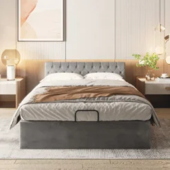 - 🌱Bettkasten vom Fußteil zu öffnen. Großer Bettkasten unterhalb des hochklappbaren Lattenrosts mit viel Stauraum