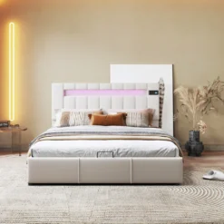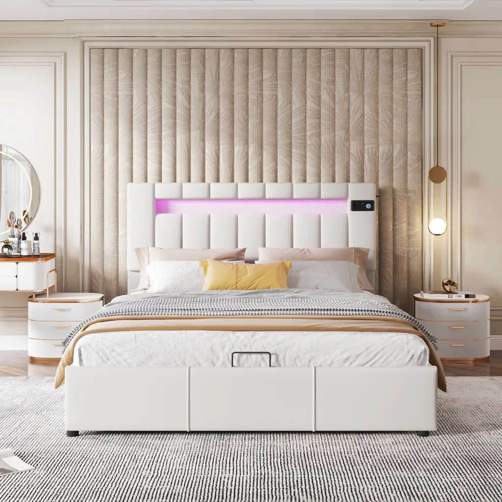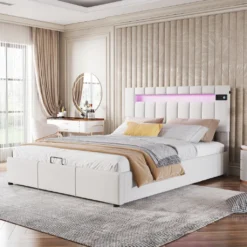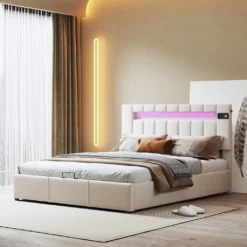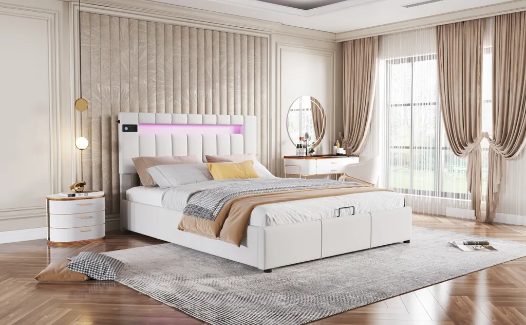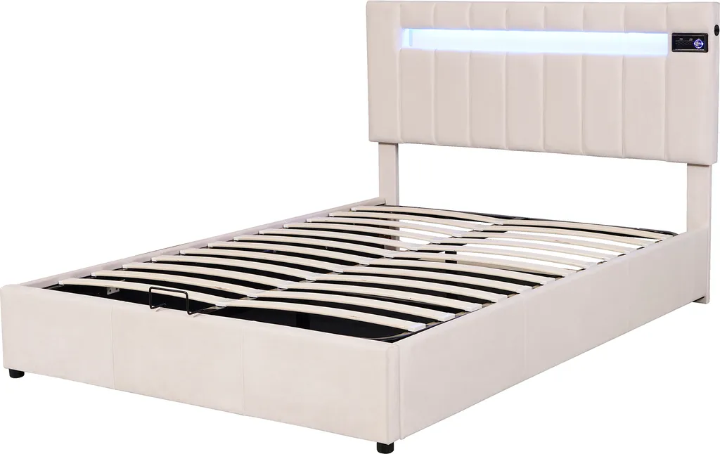 🌱【Gepolstertes Bett mit Bluetooth-Player und 2 Ladeanschlüssen】 Ein Bett ist vielseitig einsetzbar und bietet Ihnen eine entspannende und komfortable Schlafumgebung