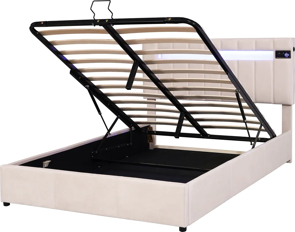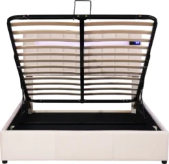 🌱【Langlebig】Dieses Stauraumbett verfügt über einen einfach zu bedienenden hydraulischen Doppelhubmechanismus aus hautfreundlichem Samtleder, einschließlich eines stabilen Mittelträgers aus Metall und eines gepolsterten Rahmens