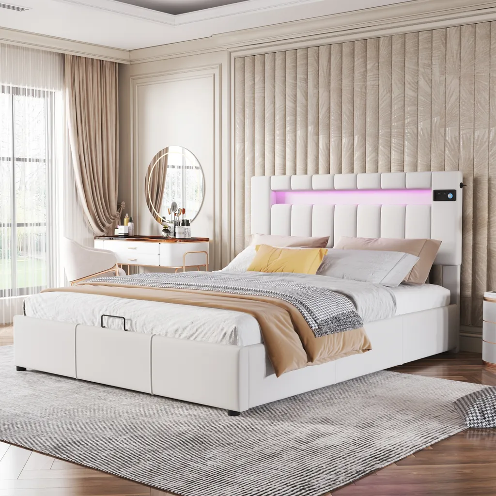 🌱【Modernes Bett mit LED】Mit bequemem Samtstoff hat das Kopfteil einen schönen LED-Lichtstreifen, der über eine 24-Tasten-Fernbedienung mit 4 automatischen Wechselmodi und 16 Lichtwechselfarben bedient wird.