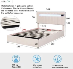 🌱【Einfach zu montierender Bettrahmen】Die Gesamtgröße des Bettes beträgt 203 x 145 x 101 (106) cm, belastbar bis 350 kg. Dieses Pad wird aus Deutschland im 2er Pack versendet. Manchmal kommen 2 Kartons nicht am selben Tag an.