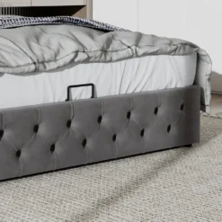 🌱【Stildesign】 Das höhere Kopfteil (94.5 cm) bietet Ihnen eine stabilere und komfortablere Kopf- und Rückenstütze. Das Polsterbett besteht aus Samtstoff, der sich hautfreundlich und weich anfühlt und Ihnen das perfekte Schlaferlebnis bietet. Grau macht das weiche Bett schmutzabweisender.