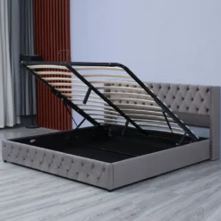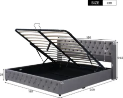 🌱 【Großer Stauraum】Hydraulische Bettkasten-Aufbewahrungsfunktion, hydraulisches Zugstangendesign, ermöglicht es Ihnen, die Bettoberfläche einfach anzuheben und Kissen, Decken, Kleidung außerhalb der Saison und Kleinigkeiten im Bettkasten zu verstauen, der ein guter Stauraum ist. Zusätzlich ist der Bettboden mit schwarzem Vliesstoff ausgekleidet, der nicht nur vor Nässe schützt, sondern auch dafür sorgt, dass die unter dem Bett gelagerten Gegenstände sauber bleiben. Die Anschlagfeder am Bettende erleichtert das Anheben des Bettkastens und trägt auch zur Fixierung der Matratze bei.