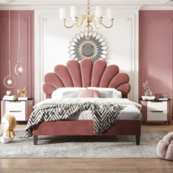 🌱【Elegantes Design】Gepolstert mit sorgfältig ausgewähltem Samtstoff und mit dekorativen Details, passt dieses Plattformbett nicht nur zu jeder Wohnkultur, sondern ist zeitlos in seinem Design.