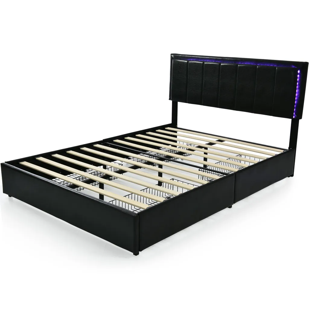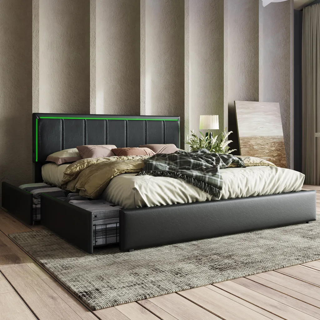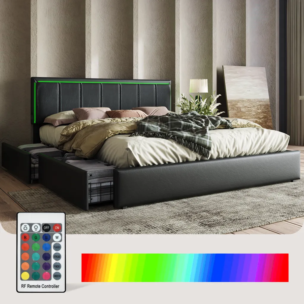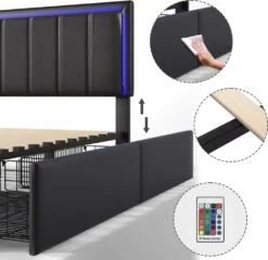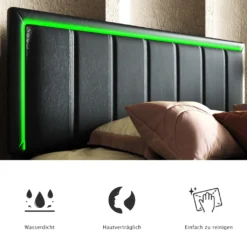 🌱【Kopfteil mit LED-Beleuchtung Design】Das LED-Design mit schwarzem PolyurethanStoff eignet sich für moderne Wohnungen und kann auch auf die Gestaltung eines Spielzimmers abgestimmt werden.