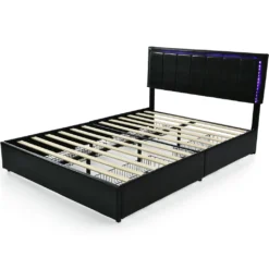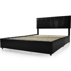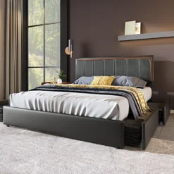 🌱【Strukturiertes schwarzes Leder】Das PolyurethanMaterial ist wasserdicht und leicht zu reinigen. Der schwarze Stoff ist nicht eintönig, da die einfache schwarze Farbe mit der Textur verschmilzt und die Gesamttextur des Bettes hervorhebt.
