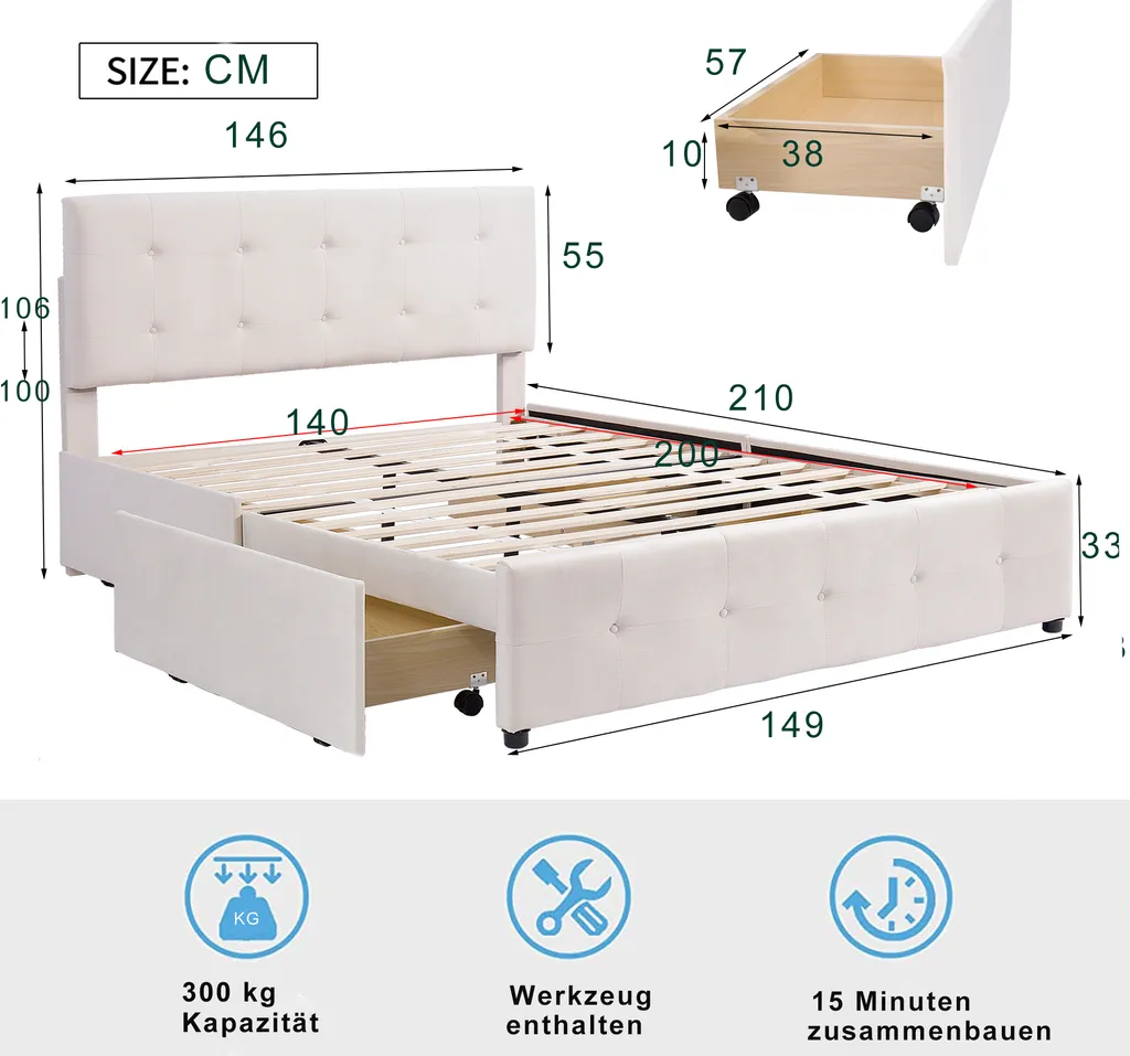 - 🌱Bequemes Polsterbett in der Größe 140×200 cm für Erwachsene und Jugendliche