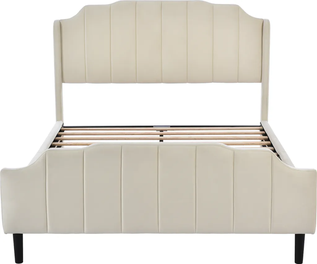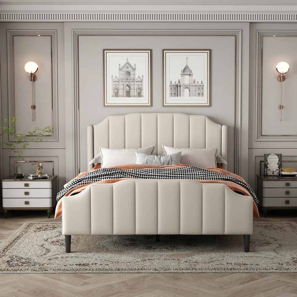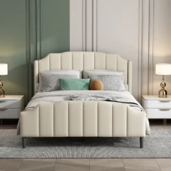 Dieses schöne gepolsterte Plattformbett mit gepolstertem Kopfteil verleiht Ihrem Schlafzimmer einen modernen, schicken Look und ist für zusätzlichen Komfort mit dickem Schaumstoff gepolstert. Massivholzrahmenkonstruktion und Holzlattensystem für zusätzliche Stabilität und Sicherheit. Diese kuratierten Stücke fangen ein, was ein Bett ist. So sollte ein Wohn- oder Schlafzimmer sein. Gutes Design sollte für jeden zugänglich sein.