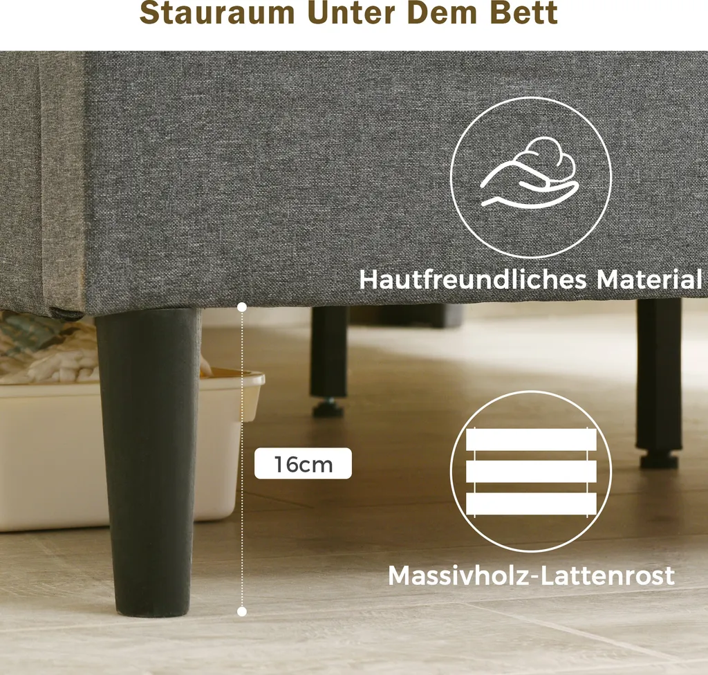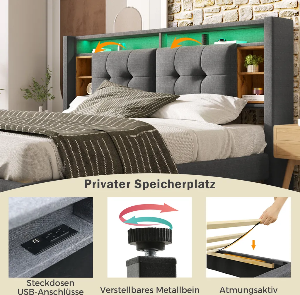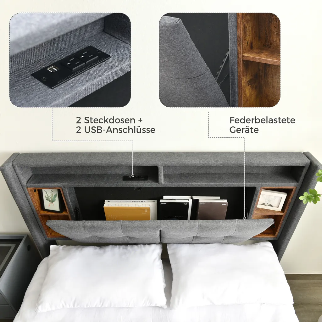 - 🌱Eines der praktischsten Merkmale ist die eingebaute Steckdose am Kopfteil, mit dem Sie Ihr Handy und Tablet vor dem Schlaf aufladen können.